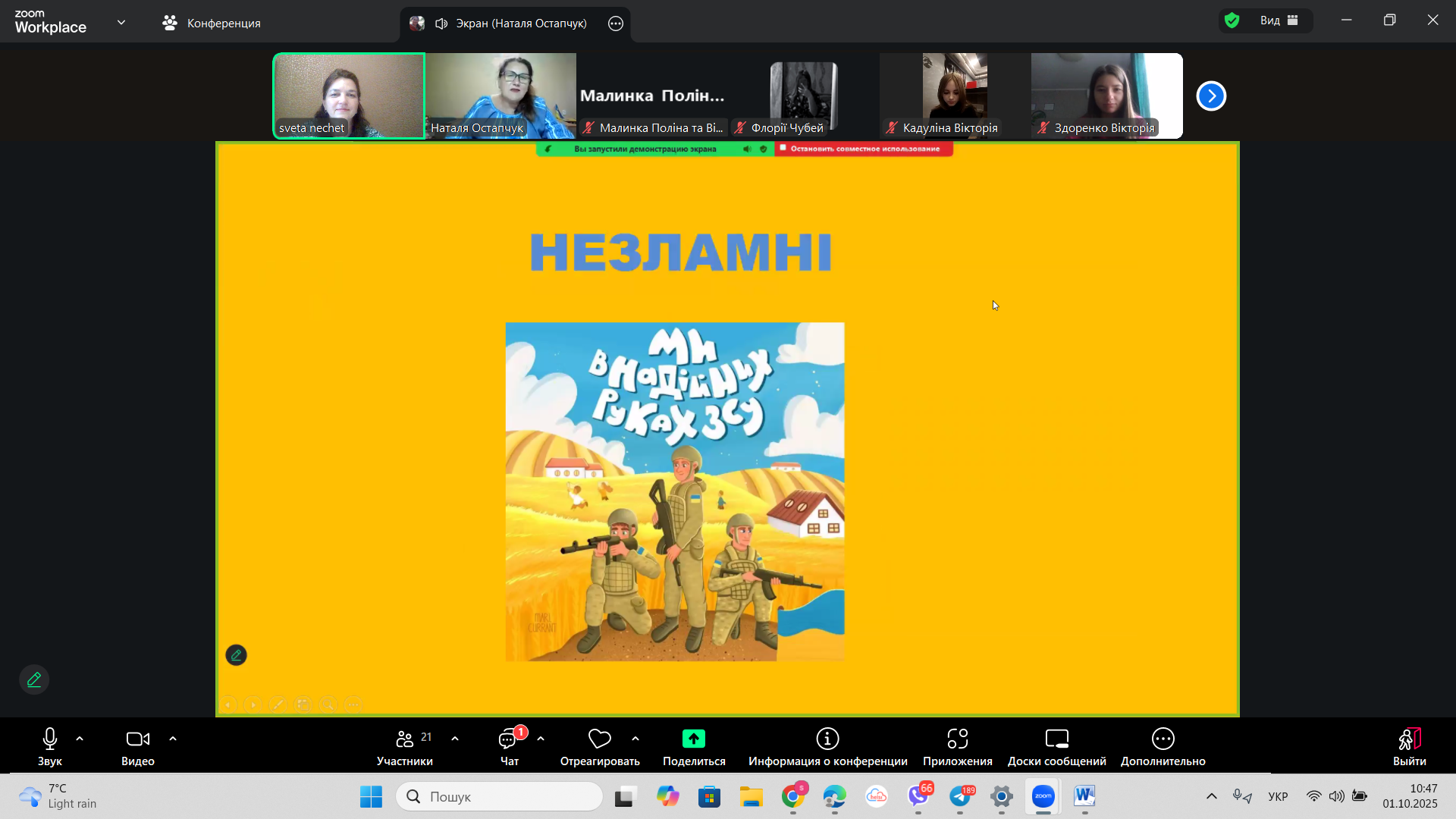 У Федорівському центрі професійного освіти 1 жовтня у групах 53 та 44 (майстер в/н Світлана Нечет) відбувся онлайн-захід «Незламні!», присвячений Дню захисників і захисниць України.